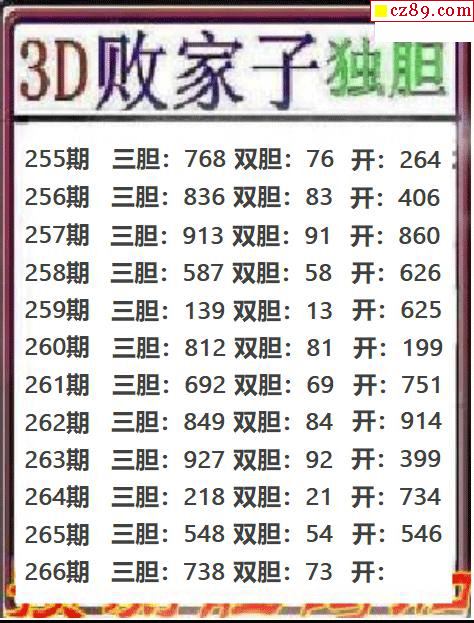 - 266期福彩3D字谜败家子字谜汇总大全2025-10-07